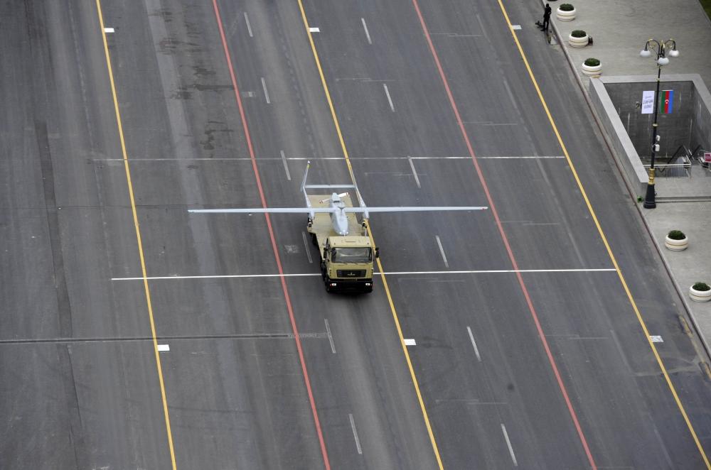 Затем на площади Азадлыг состоялся проход колонны систем противовоздушной обороны. Колонну возглавлял заместитель министра обороны - командующий Военно-воздушными силами, кавалер ордена "Зафар" генерал-лейтенант Рамиз Тахиров. Перед трибуной состоялся проход модернизированных зенитно-ракетных комплексов "Оса-1Т", "С-125 ТМ", "Бук-МБ", "Ильдырым", систем С-300 "Фаворит". За ними последовали беспилотные летательные аппараты (БПЛА) Orbiter-1KM - "Ити Гован", Orbiter-2B, Orbiter-3B, Orbiter-4, Aerostar-BP, Heron, сыгравшие очень важную роль в достижении Победы в Отечественной войне, были продемонстрированы самые современные БПЛА - Bayraktar-TB2, а также Hermes-450, Hermes-900, "Кузгун" и Harop.