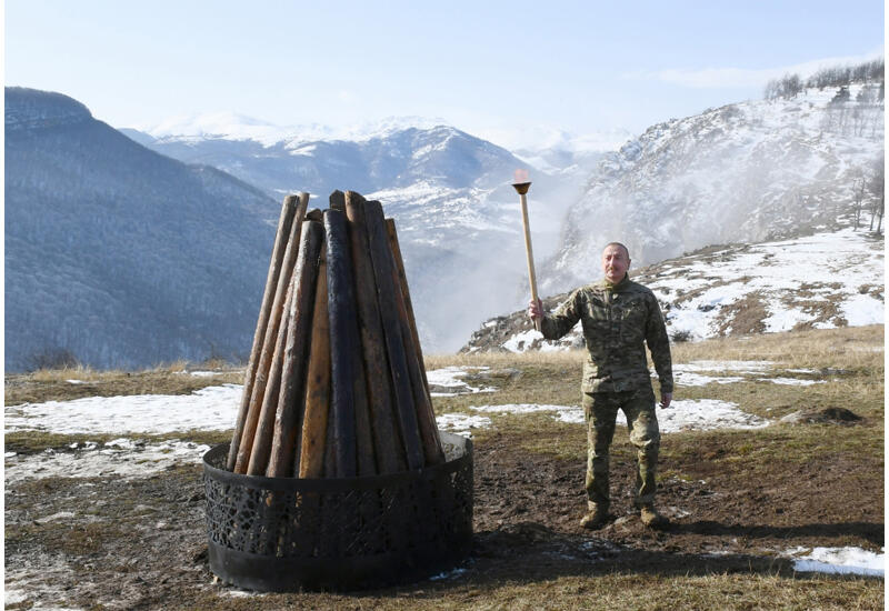 Президент Азербайджанской Республики Ильхам Алиев, Первая леди Мехрибан Алиева и их дочь Лейла Алиева разожгли в Шуше, на Джыдыр дюзю праздничный костер.