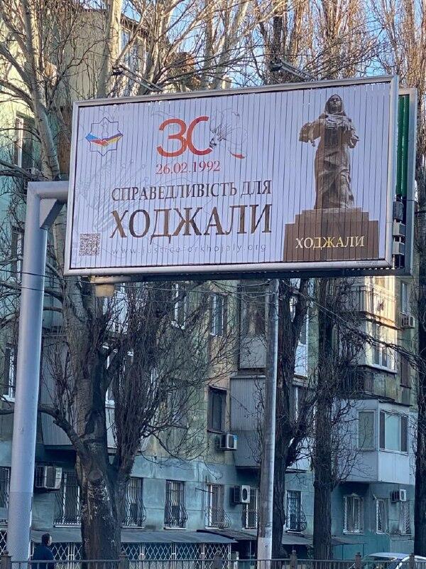 В ходе акции, организованной председателем Общественной организации "Одесская диаспора азербайджанцев "Бирлик" Ровшаном Гулиевым, на центральных улицах города были установлены билборды с отображенными на них лозунгом "Справедливость к Ходжалы!", изображением памятника "Зов матери", символизирующего Ходжалинский геноцид. Несмотря на то, что в стране идет война, соответствующие органы выполнили свою задачу по реализации этого заранее заказанного мероприятия.
