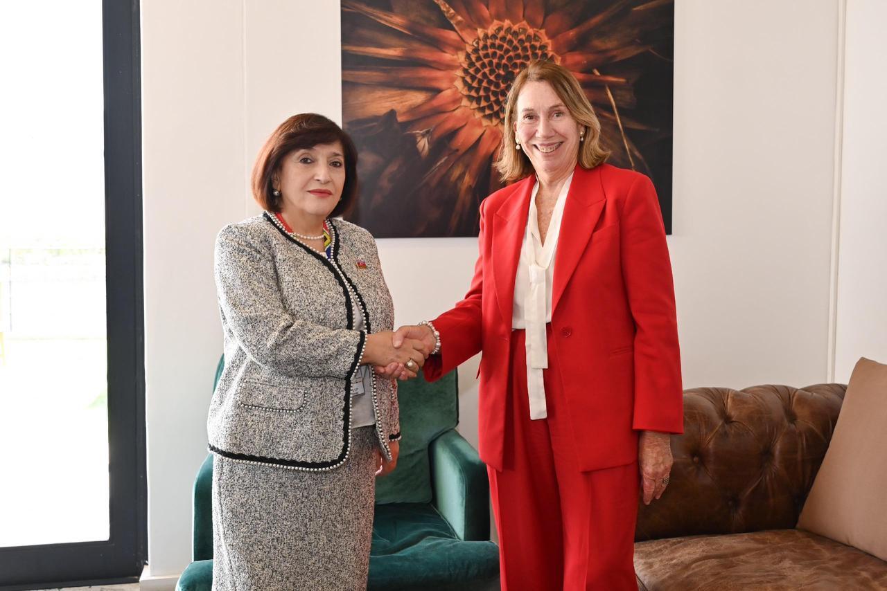 Спикер Милли Меджлиса (парламент) Азербайджана Сахиба Гафарова в рамках 11-го Саммита спикеров парламентов "Большой двадцатки" в городе Кейптаун встретилась с председателем Сената Австралии Сью Лайнс.