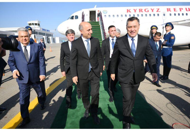 В аэропорту Президента Кыргызстана Садыра Жапарова встречали министр науки и образования Азербайджана Эмин Амруллаев и другие официальные лица.