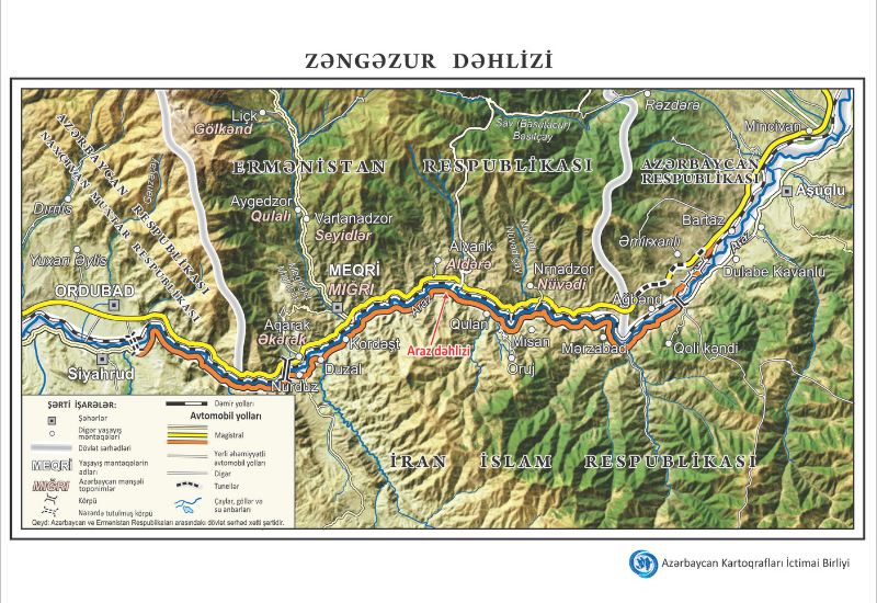 Общественное объединение "Картографы Азербайджана" подготовило карту Зангезурского коридора. Карта создана на основе космических снимков.