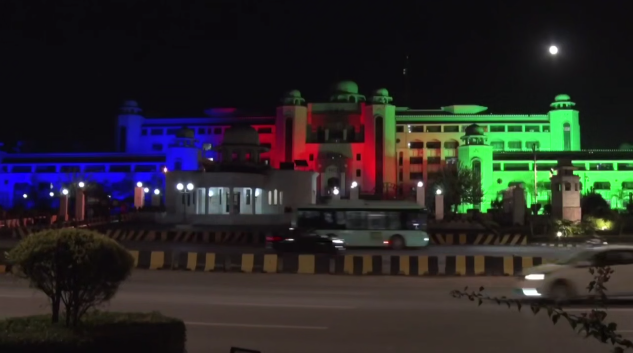 Здания в Пакистане окрасились в цвета флага Азербайджана - ВИДЕО