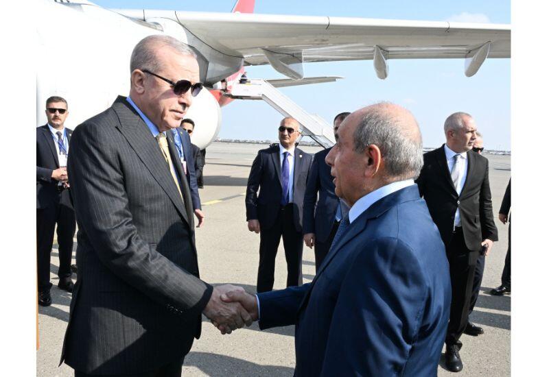 Президента Турции Реджепа Тайипа Эрдогана встречали первый заместитель премьер-министра Азербайджана Ягуб Эйюбов, заместитель министра иностранных дел Самир Шарифов, министр национальной обороны Турции Яшар Гюлер и другие официальные лица.