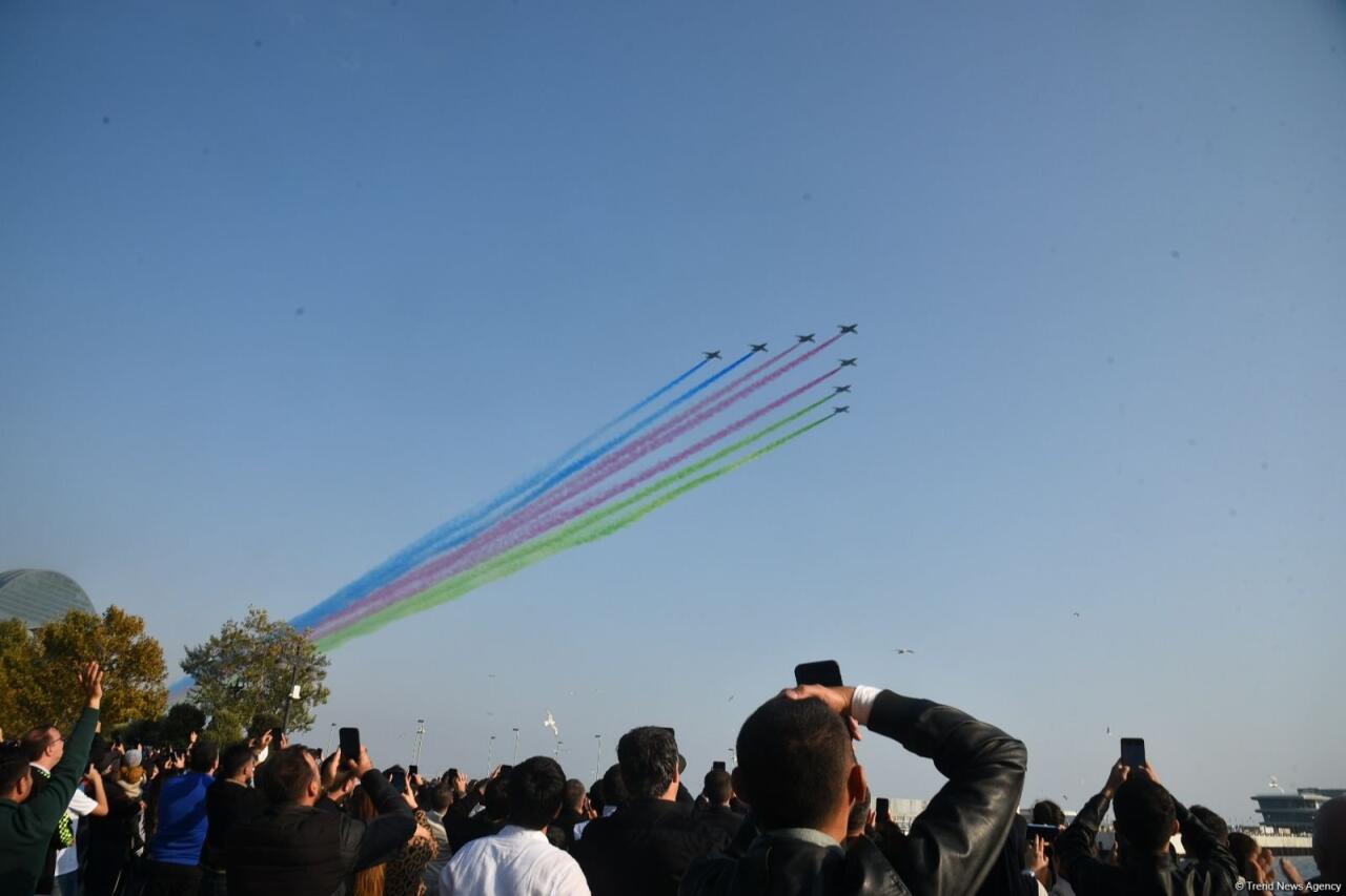"По словам главы государства, эта победа стала возможной благодаря стратегическому экономическому и военному развитию государства. Особое внимание в своем выступлении Президент Ильхам Алиев уделил масштабной реконструкции, которая сейчас активно ведется в Карабахе. Он назвал День Победы переломным моментом в истории страны, позволившим Азербайджану освободиться от бремени прошлого.