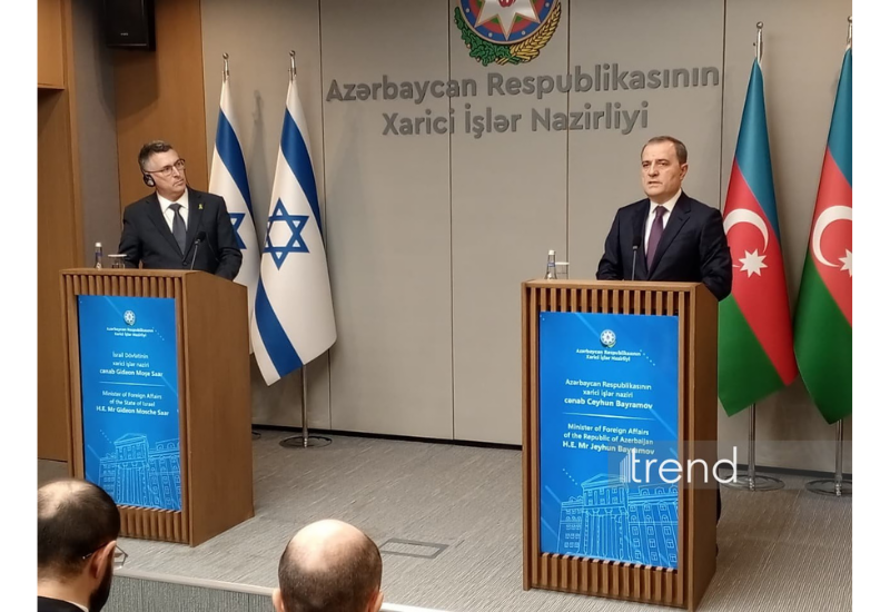 В Баку состоялся совместный брифинг с участием министра иностранных дел Азербайджана Джейхуна Байрамова и министра иностранных дел Израиля Гидеона Саара.