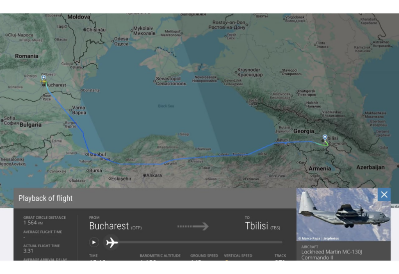 Согласно данным Flight Radar, это был военно-транспортный самолет ВВС США MC-130J Commando II. Вчера вечером он приземлился аэропорту Тбилиси, сообщают грузинские. СМИ.