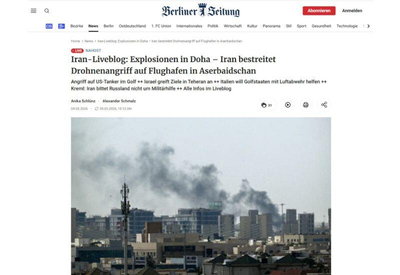 Газета Tagesspiegel отмечает, что война с участием Ирана постепенно распространяется на все большее число стран. Издание отмечает, что атакам беспилотников подверглись аэропорт и школа в Нахчыванской Автономной Республике Азербайджана. Азербайджан заявил о принятии ответных мер на этот отвратительный террористический акт. По распоряжению Президента Ильхама Алиева Вооруженные силы были приведены в состояние высокой боевой готовности.
