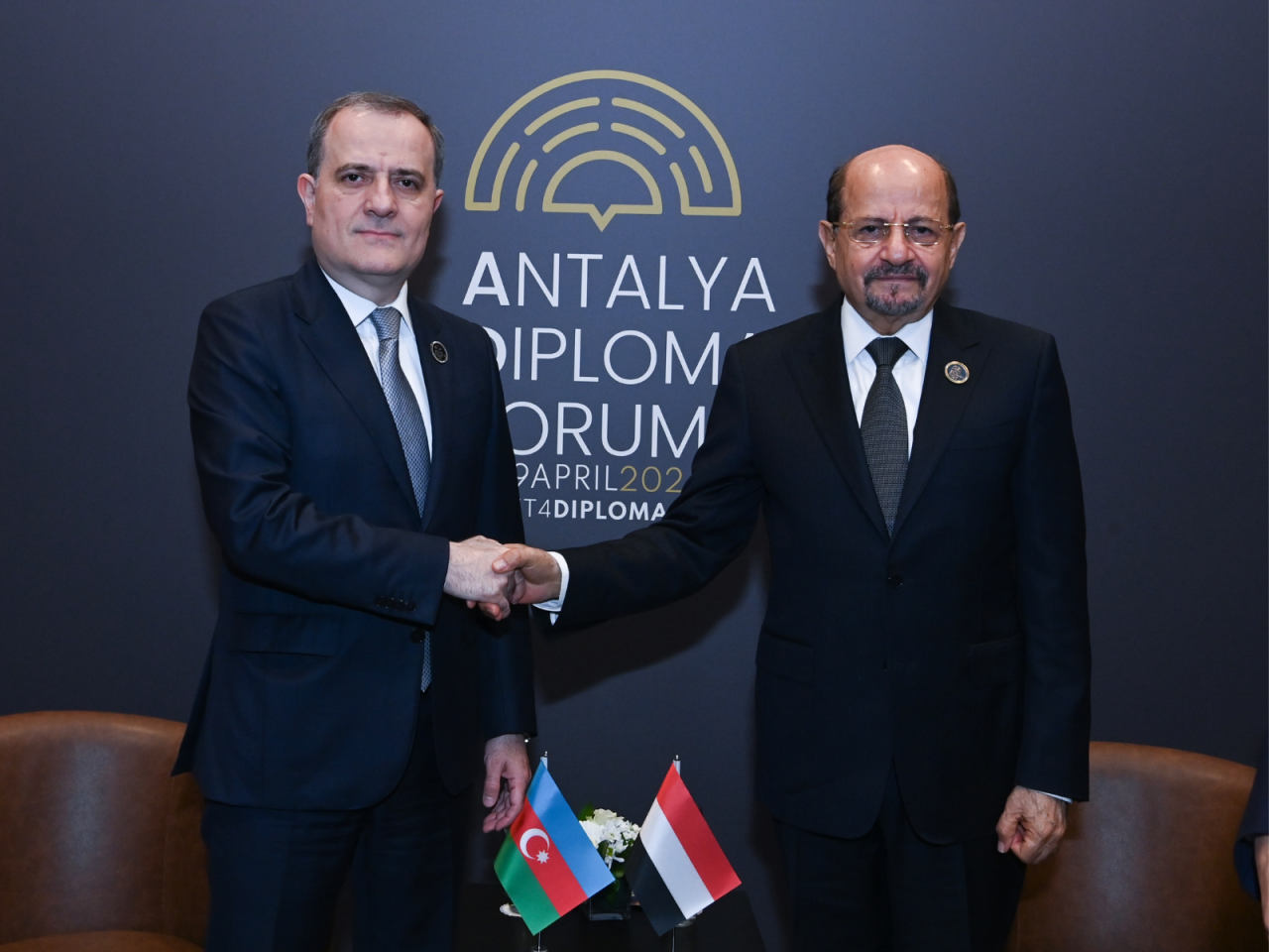 Министр иностранных дел Азербайджана Джейхун Байрамов встретился в рамках Анталийского дипломатического форума с премьер-министром, министром иностранных дел и по делам граждан, проживающих за рубежом, Йемена Шайей Мохсином Зиндани.