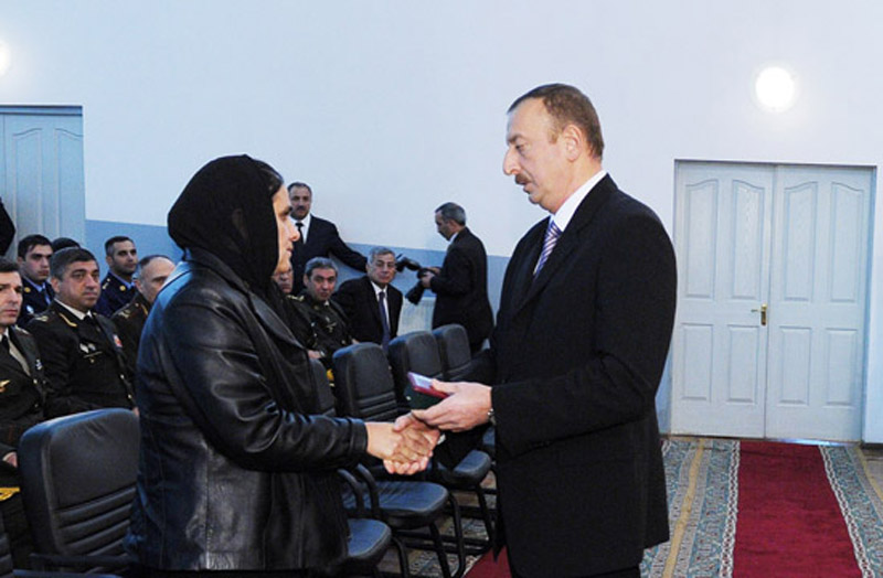 "Уважаемый Президент, господин Верховный Главнокомандующий, на основании принятого 27 октября 2010 года Совместного заявления президентов Азербайджанской Республики, Российской Федерации и Республики Армения по урегулированию нагорно-карабахского конфликта 6 ноября 2010 года на Родину были доставлены тела прапорщика Вооруженных сил Азербайджанской Республики, Национального Героя Азербайджана Мубариза Агакерим оглу Ибрагимова, который 18 июня 2010 года при выполнении боевого дежурства проявил личное мужество и доблесть в ходе ожесточенного боя, шедшего на Талыш-Борсунлинском направлении в результате нарушения вражескими силами режима прекращения огня, и погиб, уничтожив большое количество живой силы врага, и старшего лейтенанта Фарида Гюльоглан оглу Ахмедова, геройски погибшего 3 сентября 2010 года при выполнении служебного долга в Тертерском регионе.