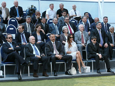 Сегодня очень знаменательный день в жизни нашей страны. Сегодня мы отмечаем 100-летний юбилей азербайджанского футбола. Я сердечно приветствую всех гостей, приехавших в нашу страну, чтобы вместе с нами участвовать в этих праздничных мероприятиях. В частности, я искренне приветствую президента ФИФА господина Блаттера и президента УЕФА господина Платини. Каждый ваш приезд придает новый импульс развитию футбола в Азербайджане, и для нас большая честь видеть вас среди гостей.