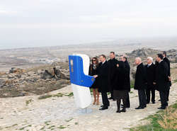 Президент Ильхам Алиев и его супруга Мехрибан Алиева посмотрели видеоролик, рассказывающий о проектах, которые будут реализованы в Гобустане. По проекту на высоте Беюкдаш в Гобустане намечается создание музея под открытым небом. Путешествие сюда можно совершить по туннелю на маленьких вагончиках. На Беюкдаше планируется также создание панорамы, отражающей культуру и природу Азербайджана.