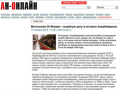 В российском издании "Аргументы недели" опубликована статья "Вспоминая 20 Января - скорбную дату в истории Азербайджана".