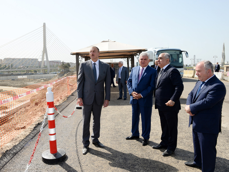 Президент Ильхам Алиев ознакомился с ходом строительства автомобильной дороги улица Гасана Алиева-проспект Зии Буниятова-Олимпийский стадион