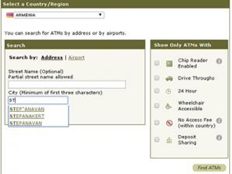 Отметим, что при поиске ATM Locator (расположение ATM) на сайте MasterCard в разделе "Армения" среди названий городов можно встретить "Stepanakert" (Ханкенди), "Shushi" (Шуша) и др. На данных территориях можно пользоваться услугами MasterCard.---------