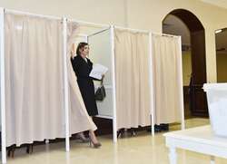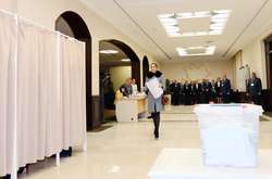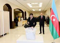 Затем проголосовали Первая леди Мехрибан Алиева и члены семьи.