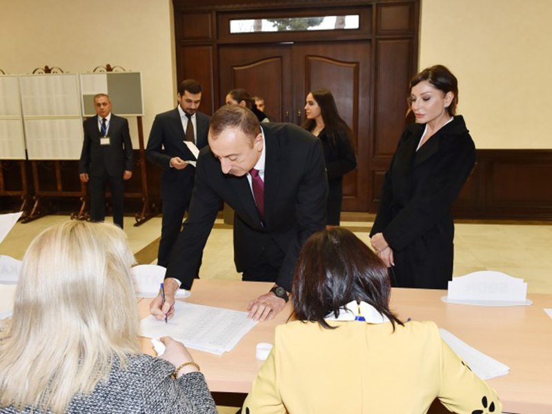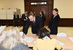 23 декабря в 10 часов утра Президент Азербайджанской Республики Ильхам Алиев вместе с супругой Мехрибан Алиевой и членами семьи пришли на избирательный участок.