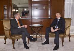 Президент Азербайджана Ильхам Алиев во вторник в рамках рабочего визита в Германию встретился с председателем Мюнхенской международной конференции по безопасности Вольфгангом Фредриком Ишингером