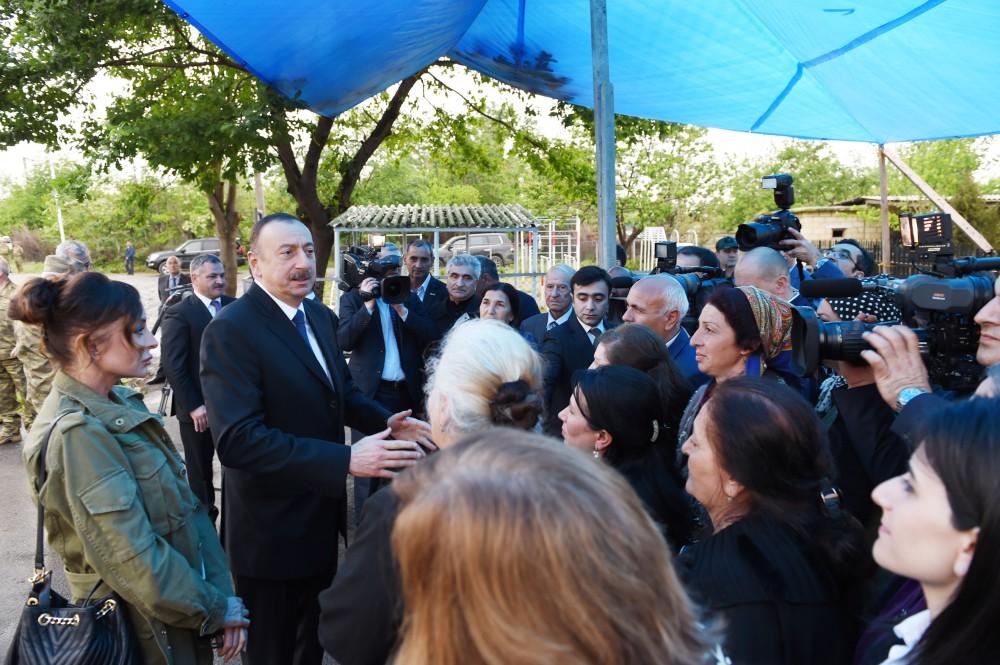 Президент Ильхам Алиев: Такие люди, как вы - источник гордости нашего народа. Здесь, в самом сложном, самом опасном месте вы живете, созидаете, творите. Весь причиненный ущерб будет устранен, будут выделены средства. Пусть граждане не беспокоятся. Азербайджанское государство - сильное, оно стоит за вами. Все разрушенные дома будут восстановлены, все нормализуется. Будьте твердыми.