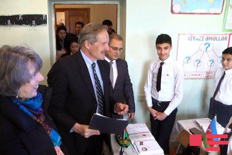 Сегодня посол США в Азербайджане Роберт Секута и его супруга посетили в поселке Ени Гала школу № 323 для вынужденных переселенцев, строительство которой финансировалось США.