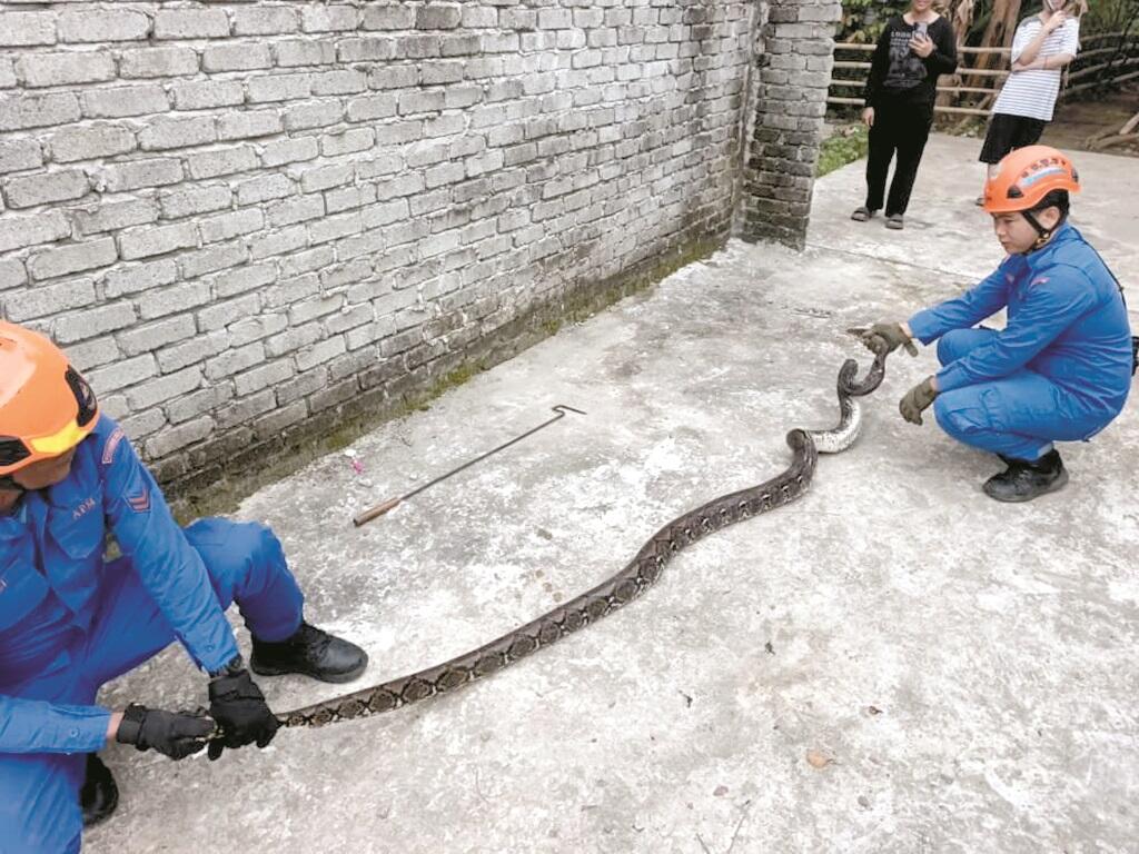 Хафис испугался и вызвал спасателей. Они прибыли на место через 20 минут после звонка и быстро извлекли 13-килограммовую змею длиной около трех метров из-под деревянных досок, где она спряталась. Затем питона выпустили в естественную среду обитания вдали от жилых районов.