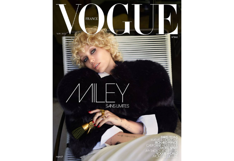 32-летняя Майли Сайрус стала героиней нового выпуска французского журнала Vogue. На обложке певица предстала в парике с короткими кудрявыми волосами и макияжем с черной подводкой, тушью и нюдовой помадой. Поп-исполнительница позировала в черной короткой шубе, белой рубашке и молочной атласной юбке.