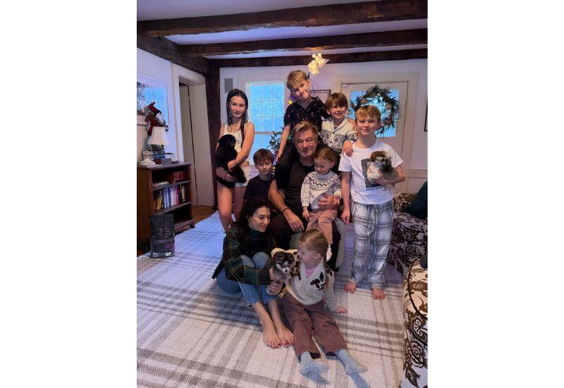 Алек Болдуин снялся с женой и семью детьми возле рождественской елки