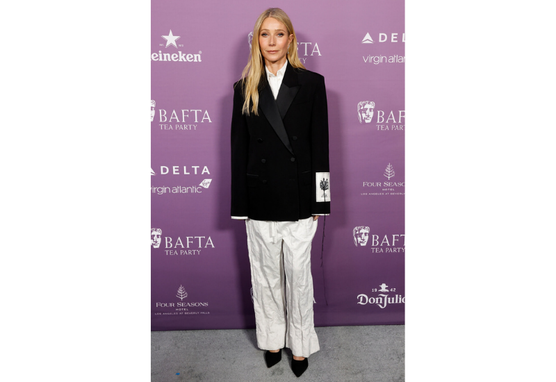 Гвинет Пэлтроу стала гостьей вечера, организованного в преддверии церемонии вручения кинопремии BAFTA в отеле Four Seasons в Лос-Анджелесе. Актриса выбрала для закрытого светского мероприятия белую рубашку, черный жакет, брюки с эффектом мятой ткани и туфли на каблуках. Артистке уложили распущенные волосы и сделали макияж с черными тенями.