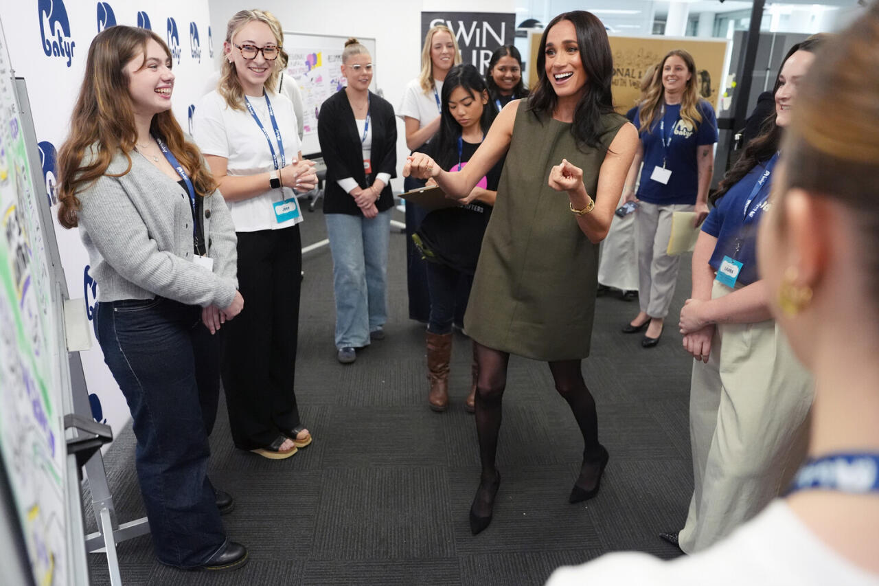 Меган Маркл и принц Гарри во время визита в Австралию прогулялись по парку в Мельбурне и посетили центр поддержки психического здоровья в местном технологическом университете. 44-летняя герцогиня предпочла для выхода зеленое мини-платье Friends of Frank свободного кроя, из-за которого ее заподозрили в беременности. Образ дополнили туфли Manolo Blahnik и винтажные серьги Chanel.