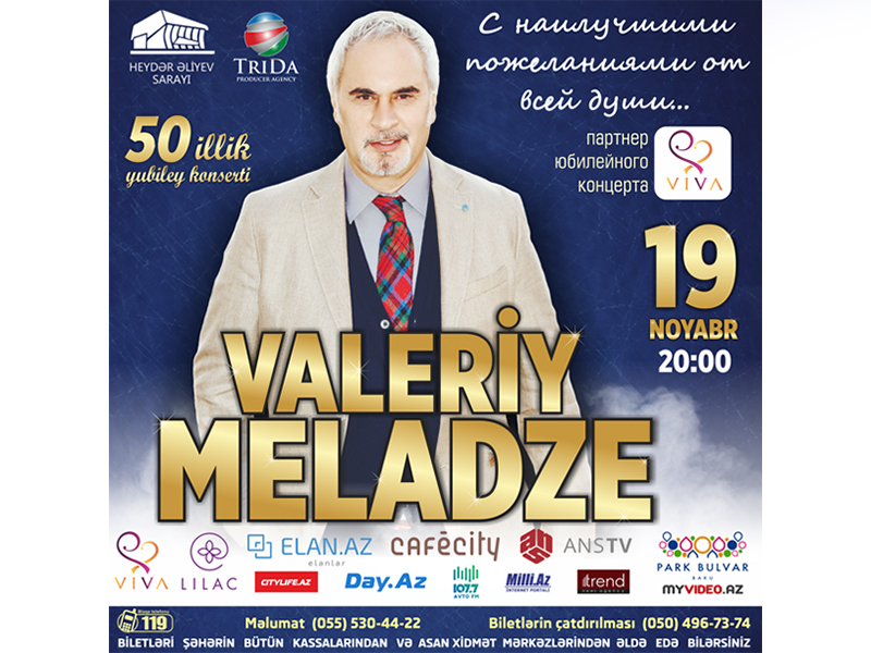 19 ноября во Дворце Гейдара Алиева состоится концерт в рамках юбилейного тура Валерия Меладзе - "Полста". Организатор концерта - компания TriDa и официальный партнер концерта VIVA - Boutique de Pâtisserie разыгрывают два билета на концерт последнего романтика российской сцены.