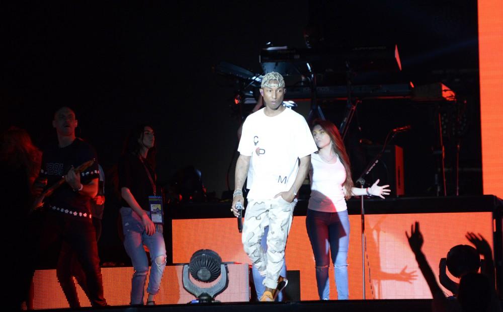 Поприветствовав публику, Фаррелл Уильямс стал исполнил свои самые известные песни, но все больше всего ждали услышать от него композицию "Happy", которая является одним из его самых громких хитов.