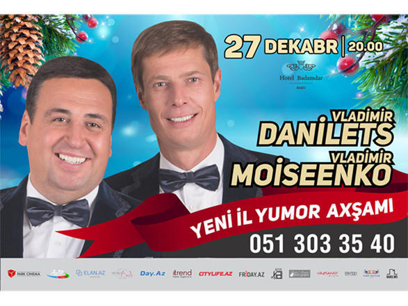 Популярный юмористический дуэт Владимир Данилец и Владимир Моисеенко в преддверии концерта "Новогодний вечера юмора", который состоится 27 декабря в 20.00 на сцене "Аудиториум Холл" Hotel Badamdar Baku, в своем видеобращении поздравляют бакинцев с наступающим 2017 годом и приглашают на свой концерт, передает Day.Az со ссылкой на Trend.
