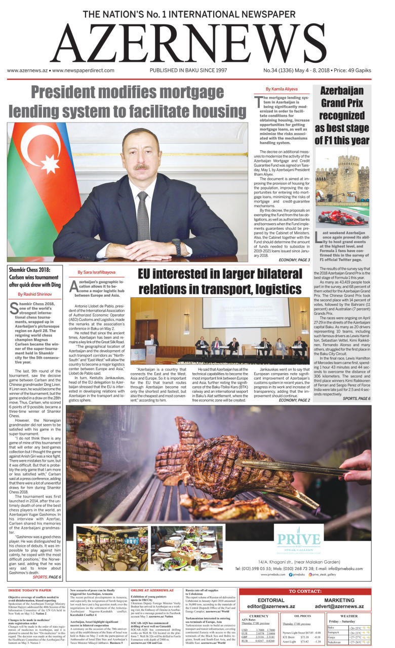 С онлайн-газетой Вы можете ознакомиться на сайте www.azernews.az.