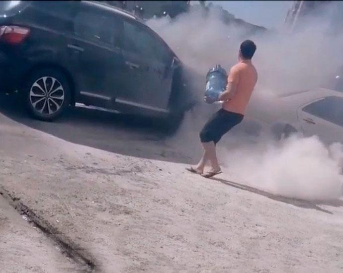 В Баку сгорела иномарка