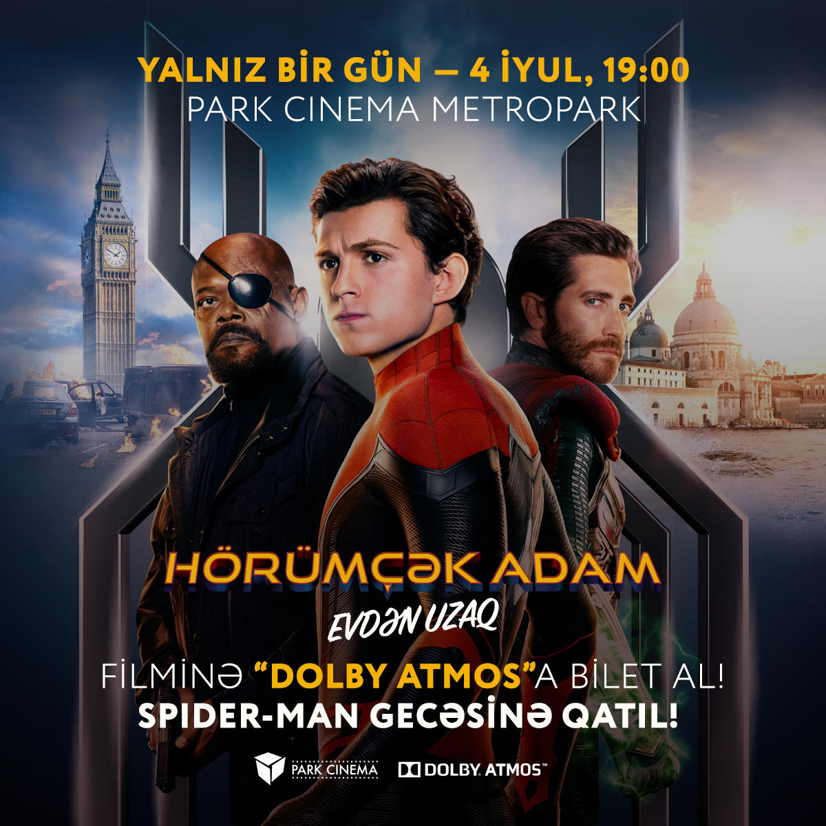 В формате IMAX азербайджанские зрители смогут увидеть этот фильм только в сети кинотеатров Park Cinema. Но, кроме того, самая технологичная сеть кинотеатров Азербайджана предлагает фанатам "Человека-паука" принять участие на специальной вечеринке, посвященной старту фильма в прокате. Она состоится 4 июля в кинотеатре Park Cinema Metropark, а для того, чтобы принять в ней участие достаточно купить билет на сеанс фильма в зале Dolby Atmos на любую дату. Вечеринка начнется в 19:00.
