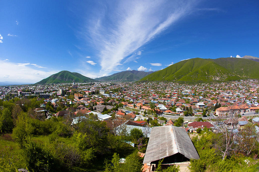 Вы думаете, на этом чудеса закончились? Нет... Когда мы вышли во двор церкви, нам показали еще одно чудо - Камень желания. Говорят, сюда привозят маленьких деток, страдающих разными трудно- и неизлечимыми болезнями. Их оставляют посидеть на камушке, а родители молятся и просят у Всевышнего благословения. Здесь в этом необычном месте человек заряжается необыкновенной силой - душевной силой. Вы можете посидеть на скамеечке во дворе и насладиться великолепным пейзажем вокруг, вдохнуть эту жизнь. Я думаю, что и в те давние времена, когда начинали строить этот храм, здесь было так же красиво. Поэтому и построили его здесь, на фоне Кавказских гор. Какой синхрон между человеком и природой! Здесь вы не увидите ничего лишнего - горы, храм, Киш, люди, ручейки по улицам из речного камня, воздух, солнце. Абсолютная идиллия.