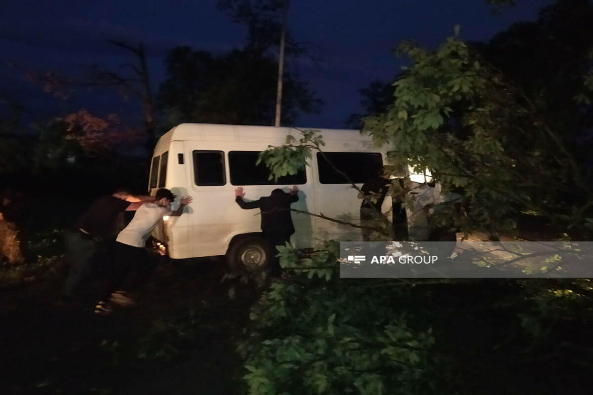 Шквальный ветер повалил деревья на проезжую часть старого шоссе Алят-Астара, в результате движение заблокировалось.