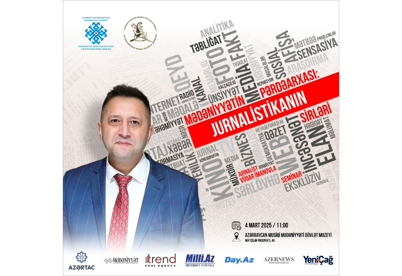 Первый семинар проекта "Закулисье культуры: тайны журналистики" стартует 4 марта в 11.00 при поддержке Государственного музея музыкальной культуры Азербайджана. Его гостем станет глава отдела культуры АМИ Trend, обладатель медали "Терегги", журналист Вугар Иманов.