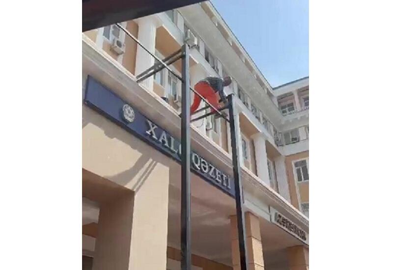 В Баку с фасада архитектурного памятника демонтируются металлические конструкции - ВИДЕО