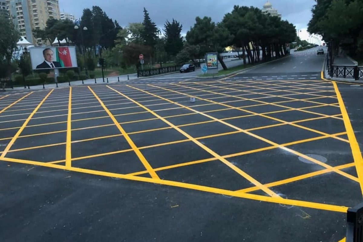 На одной из улиц Баку нанесли желтую сетку - ВИДЕО