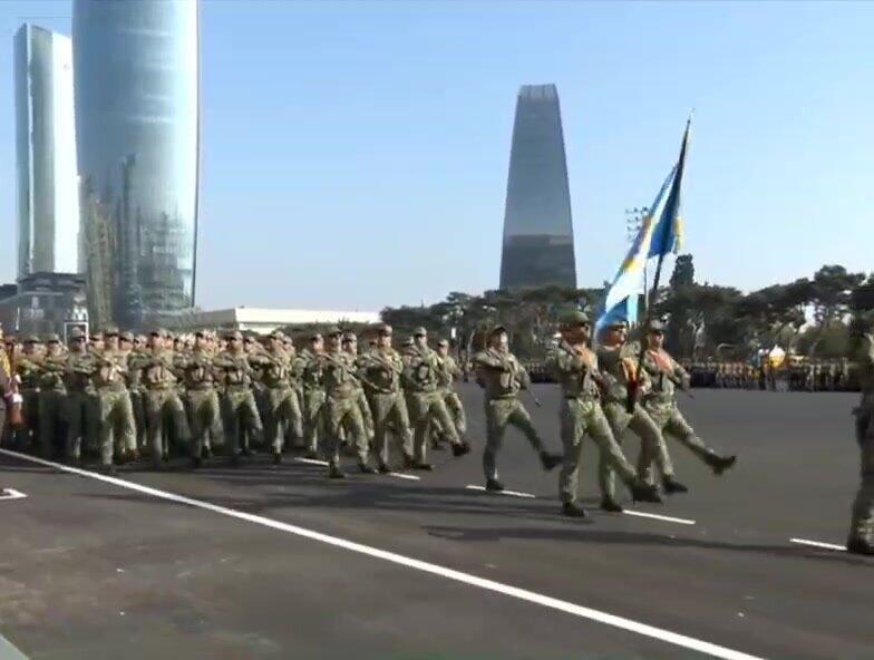 Как сообщает Day.Az, парадным расчётом командовал полковник Адам Гусейнов, награждённый орденом "За службу Отечеству".