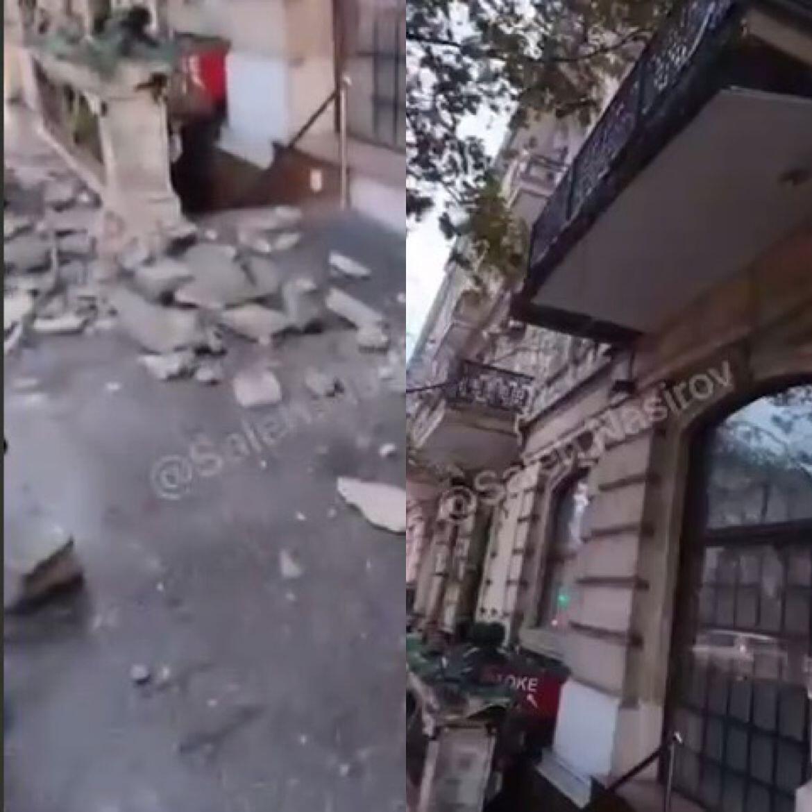 В центре Баку обрушилась часть балкона - ВИДЕО