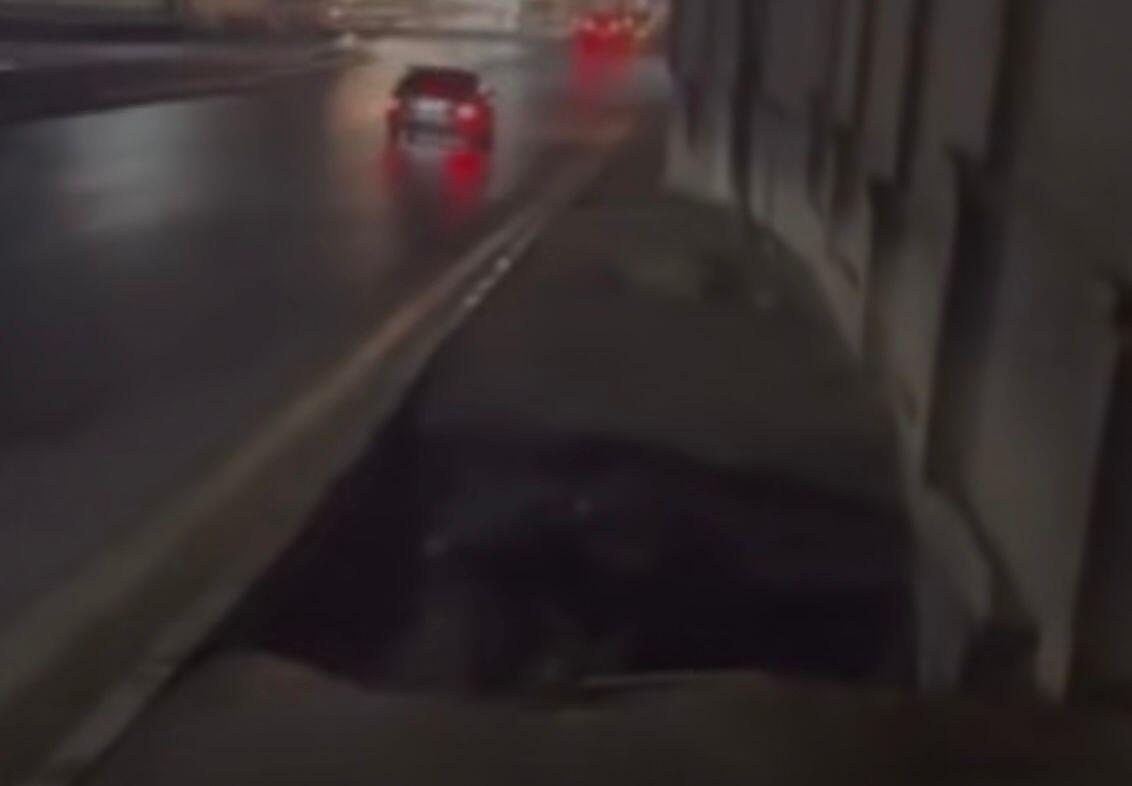 Как сообщает Day.Az, на пешеходном тротуаре, расположенном вдоль дороги, образовалась крупная яма.