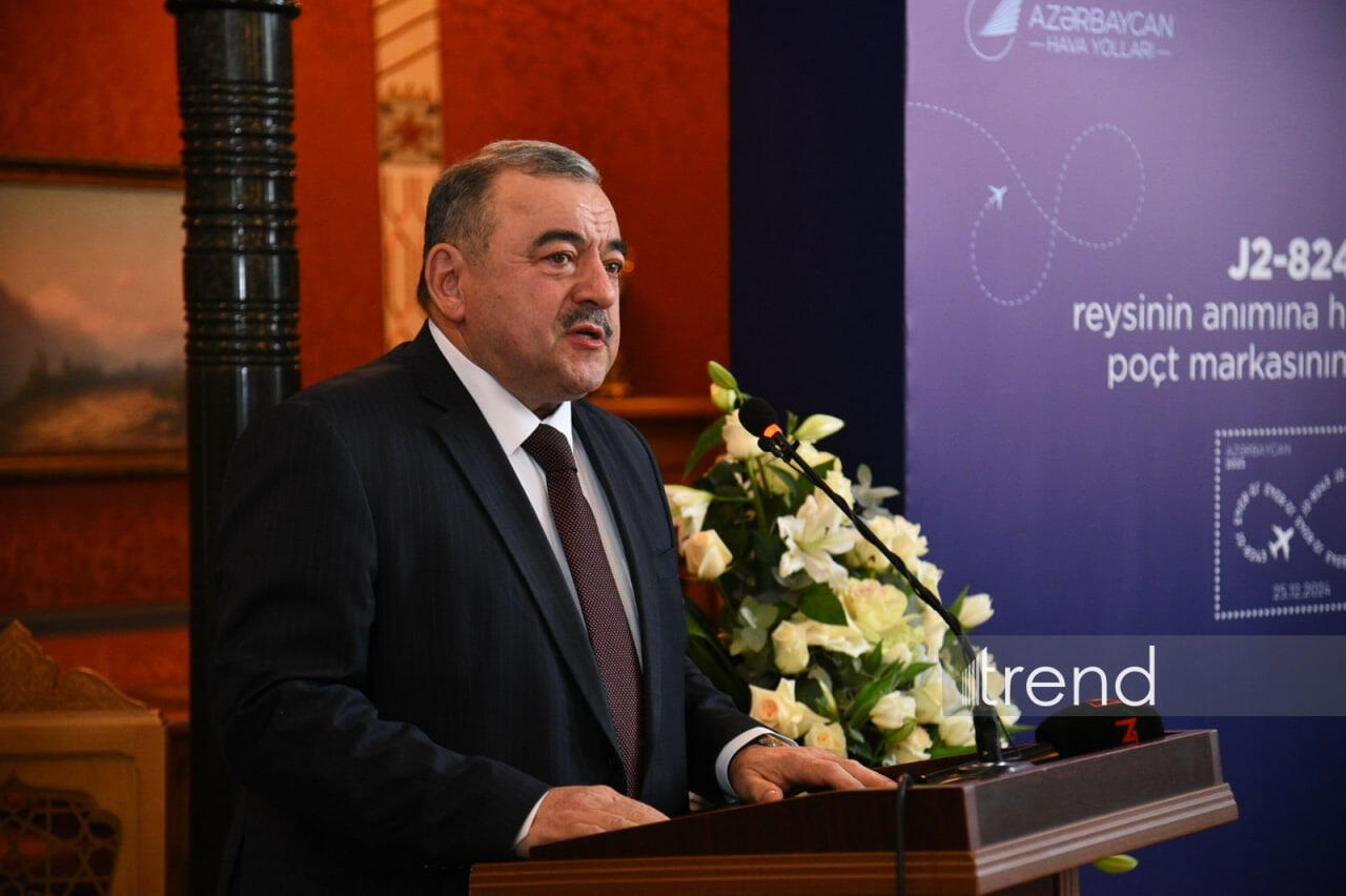 Вице-президент AZAL подчеркнул, что цель мероприятия - презентация почтовой марки в память о погибших на рейсе J2-8243. Марка была выпущена по совместной инициативе AZAL и "Азерпочт".