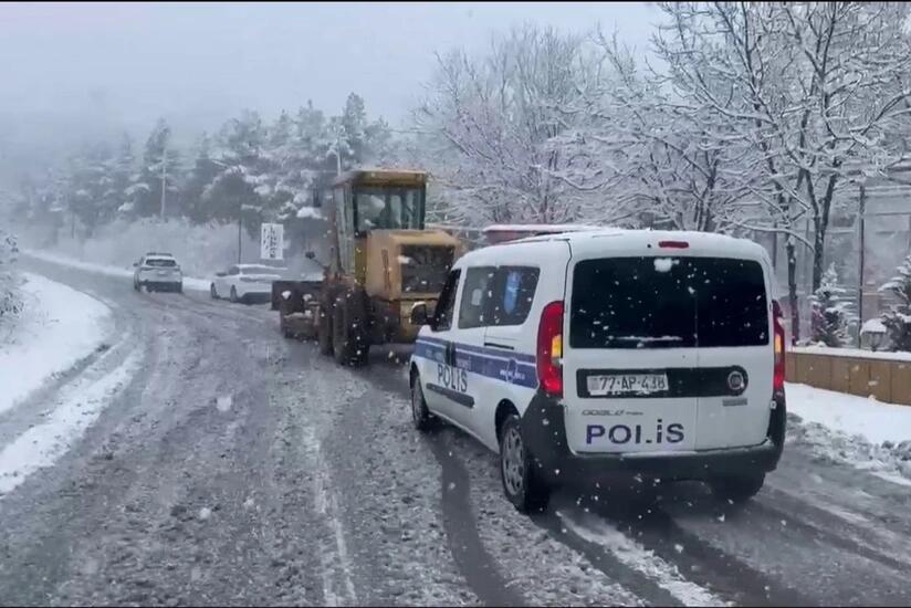 МВД совместно с другими госорганами Азербайджана продолжает работы по очистке в регионах страны дорог и дорожных знаков от снега и льда.