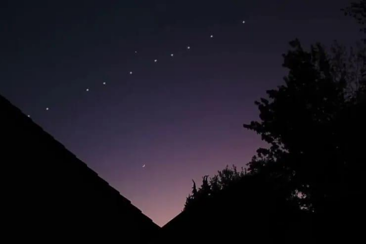 Как сообщает Day.Az со ссылкой на Lent.az, внимание жителей привлекла необычная последовательность огней в небе.