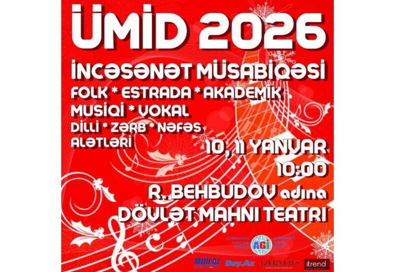В Государственном театре песни имени Рашида Бейбутова 10 и 11 января пройдёт конкурс искусств "Ümid 2026", организованный Союзом молодежи Азербайджана и Ассоциацией танца Азербайджана, сообщает Trend Life.