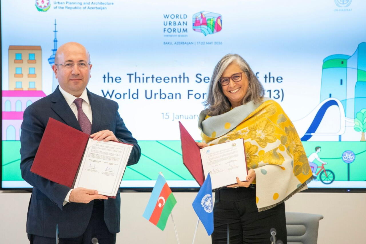 15 января 2026 года между Организацией Объединенных Наций, представленной Программой ООН по населенным пунктам (UN-Habitat), и правительством Азербайджанской Республики, представленным Государственным комитетом по градостроительству и архитектуре, было подписано соглашение, охватывающее все организационные вопросы, связанные с 13-й сессией Всемирного форума городов (WUF13).