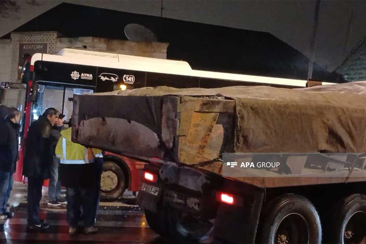 Серьезное ДТП в Гяндже, столкнулись автобус и грузовик - ФОТО