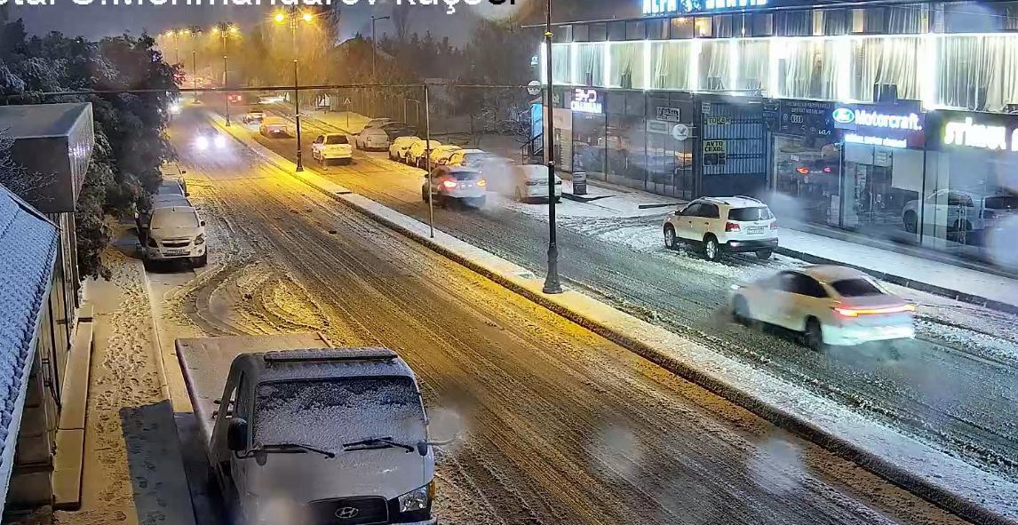 В настоящее время из-за наблюдающейся в Баку снежной погоды затруднено движение транспорта в некоторых частях Баку.